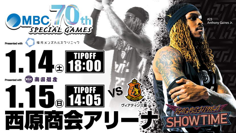 鹿児島レブナイズのヴィアティン三重との2連戦は「MBC創立70周年SPECIAL GAMES」。