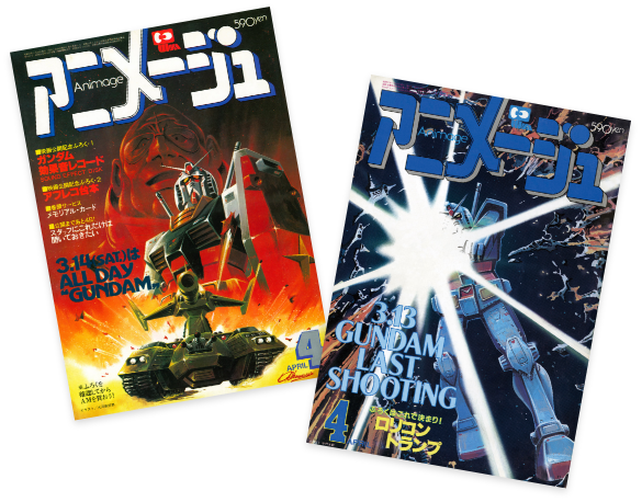 1979年4月から放送が開始されたテレビアニメ「機動戦士ガンダム」に「アニメージュ」は注目し、雑誌をあげて全面的に応援しました。「ガンダム」を作っているのはどんな人たちなのか、富野喜幸(由悠季)監督をはじめ、美術・デザインに係る人々や作品に命を吹き込む声優の人々を、繰り返し特集で取り上げました。読者は、初めてアニメを誰がどのように作っているのかを知り、作品と同じように「作家」たちにも熱い視線を送るようになったのです。