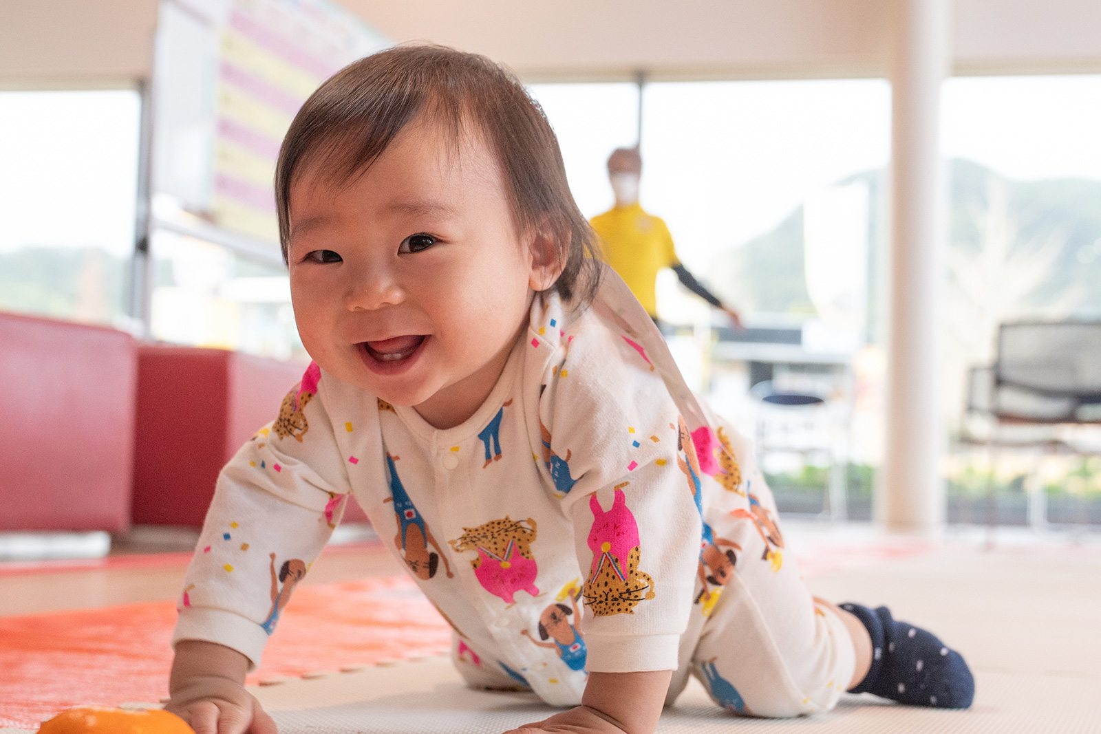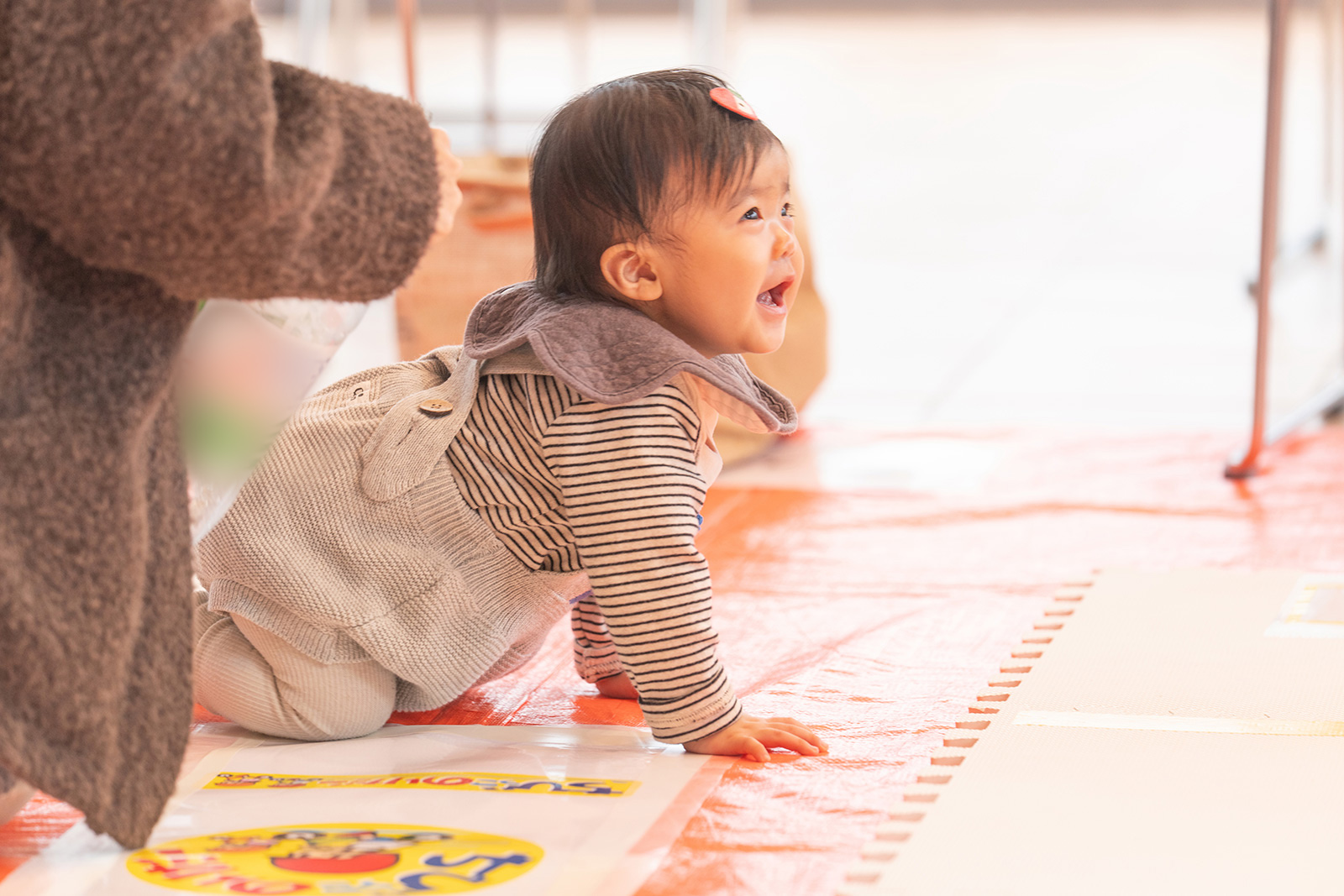 直線距離のコースをハイハイでゴールを目指す、あかちゃんたちによるレースです。
