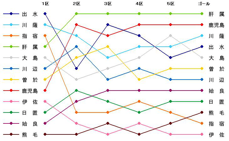 | 10位 | 36:16 | 指宿 | 田口 ひかる | 10位 | 11:16 |