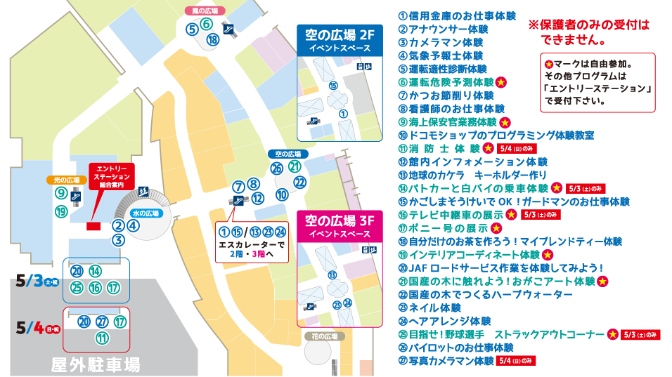 ※ご注意:保護者のみの受付は不可です。必ず参加するお子様と一緒に受付をお願いします