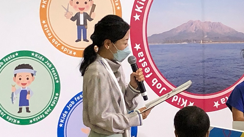 イオンモール鹿児島のお仕事として、館内放送に乗せてお客様に様々な案内をお伝えするインフォメーションの体験ができます。