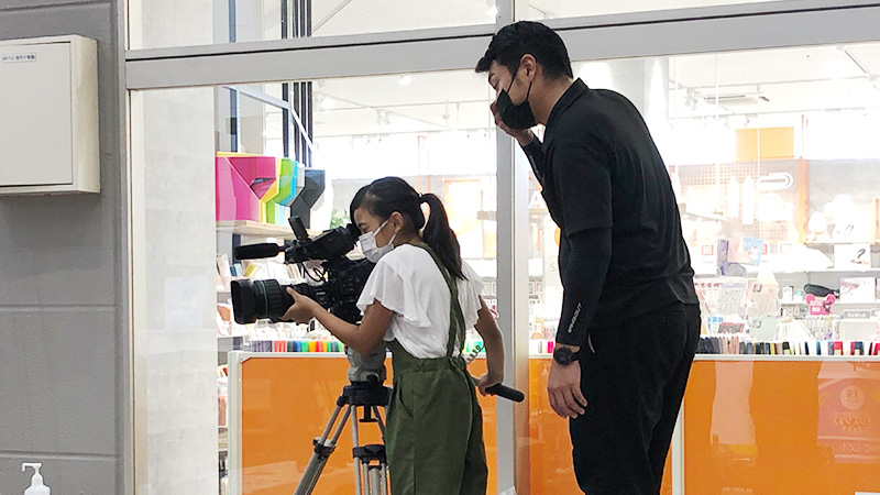 カメラマンのお仕事として、テレビ番組のようにアナウンサーや気象予報士を撮影する体験ができます。