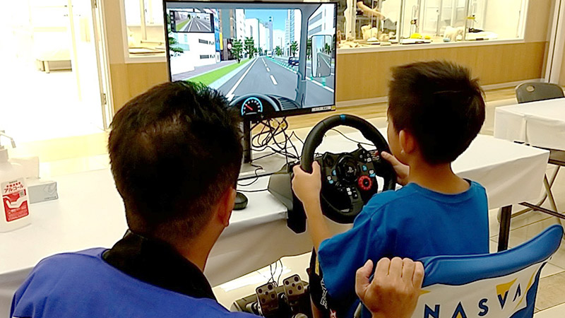ドライバーに運転適性診断をおこなう仕事として、実際にバス、トラック、タクシーなどプロのドライバーが受診している診断機器を使って、運転シミュレーター体験をおこないます。バスやトラックのドライバーになった気分で運転体験ができます。