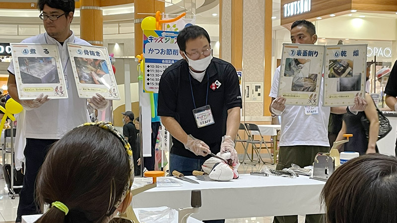 かつお節職人のお仕事を学び、実際にかつお節削り体験を行うことができます。