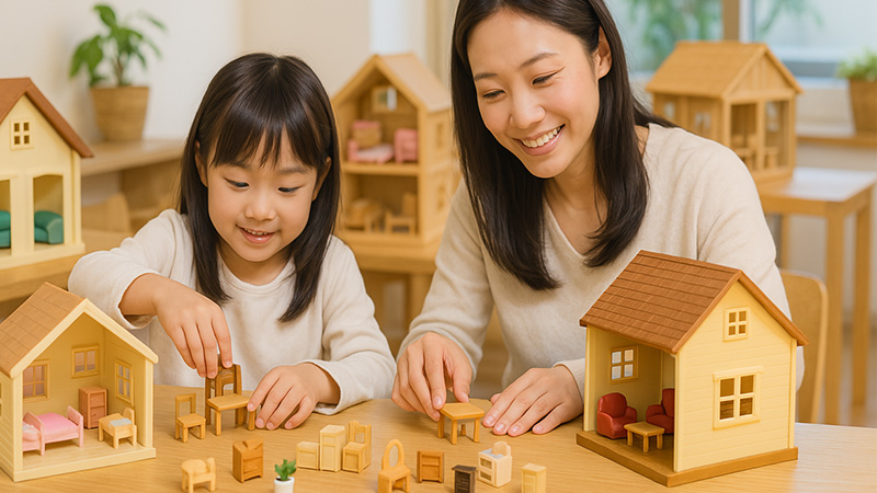 「かわいいお部屋」や「かっこいいお部屋」など、理想のおうちをつくってみよう!家具を自分好みに組み合わせて、目指せインテリアコーディネーター!最後は写真を撮って、みんなに見てもらってね。