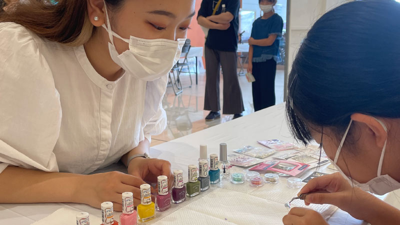 ネイリストのお仕事として爪をおしゃれに見せるための、ネイルチップを使ったネイル体験ができます。