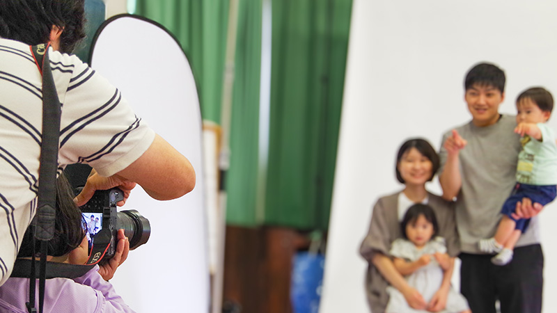 写真カメラマンのお仕事として、プロのカメラマンから撮影方法を学んで、実際に一眼レフカメラを使って、家族写真を撮影します。撮影した家族写真のデータはお渡しします。