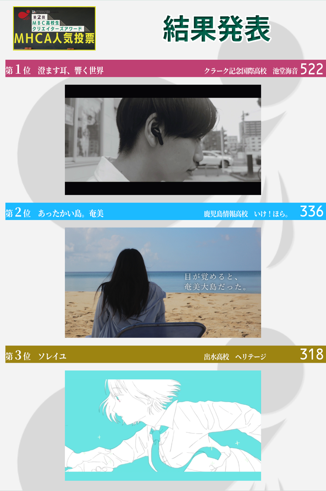 第2回MBC高校生クリエイターズアワード MHCA 投票結果の順位