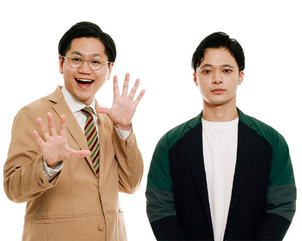 たける(左側・岡山県出身)と、ショーゴ(右側・東串良生まれ)からなるお笑いコンビ。M-1グランプリ2020ファイナリストの若手実力派漫才師。岡山の郷土芸能・備中神楽をモチーフにした独特のツッコミが特徴。ショーゴは芸人屈指の筋肉自慢。TBSテレビ【ラヴィット!】レギュラーメンバーとして活躍中。