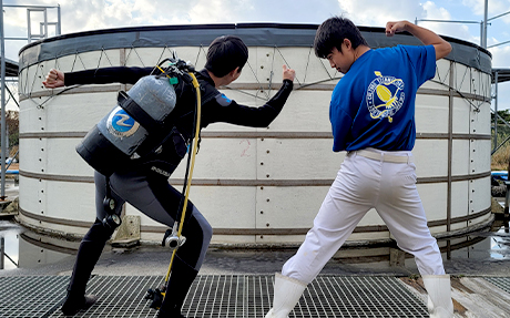 「将来何を勉強したいのぉ?」「海、船、魚、無線、調理かなぁ」「それなら、やっぱり鹿児島水産高校だよねぇ」