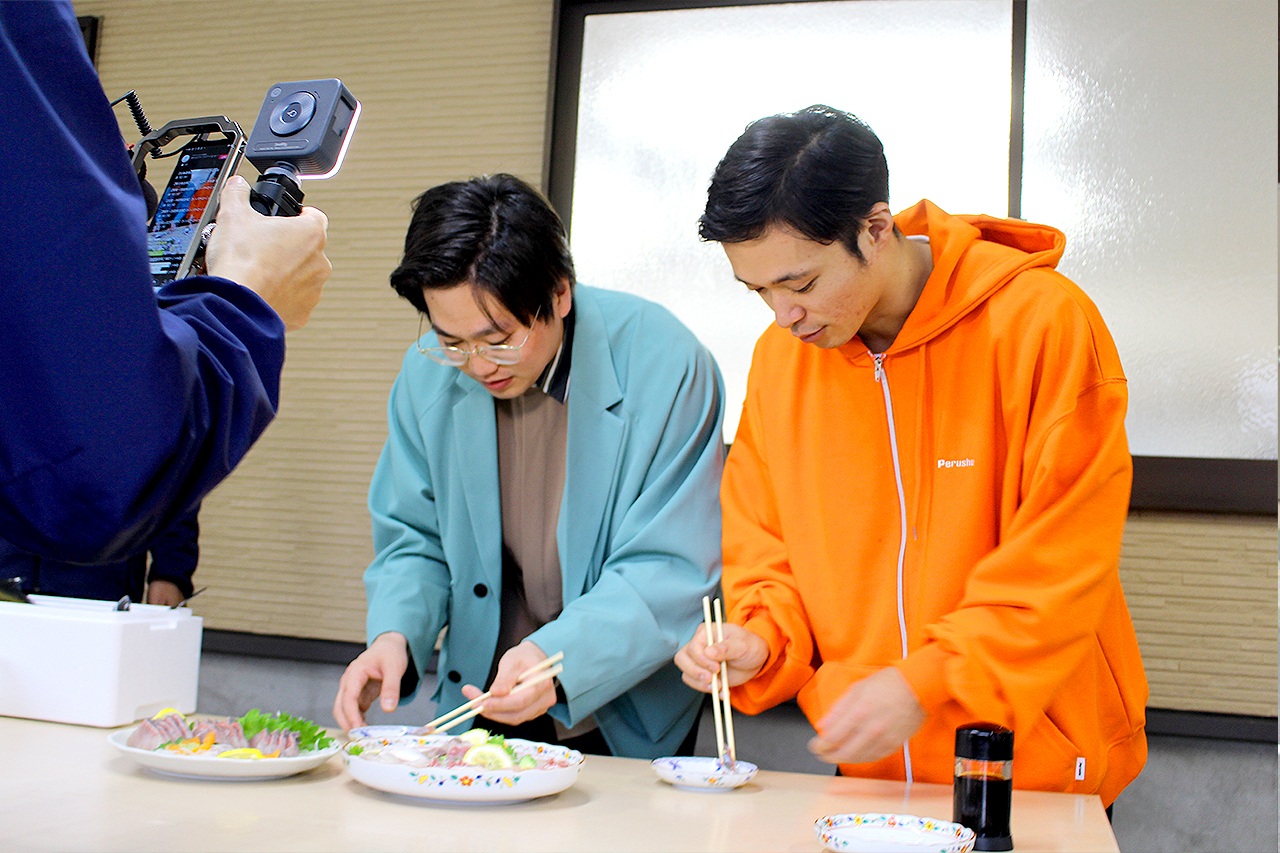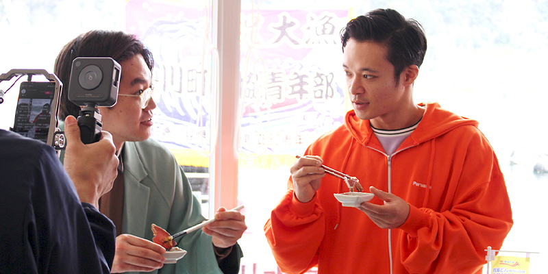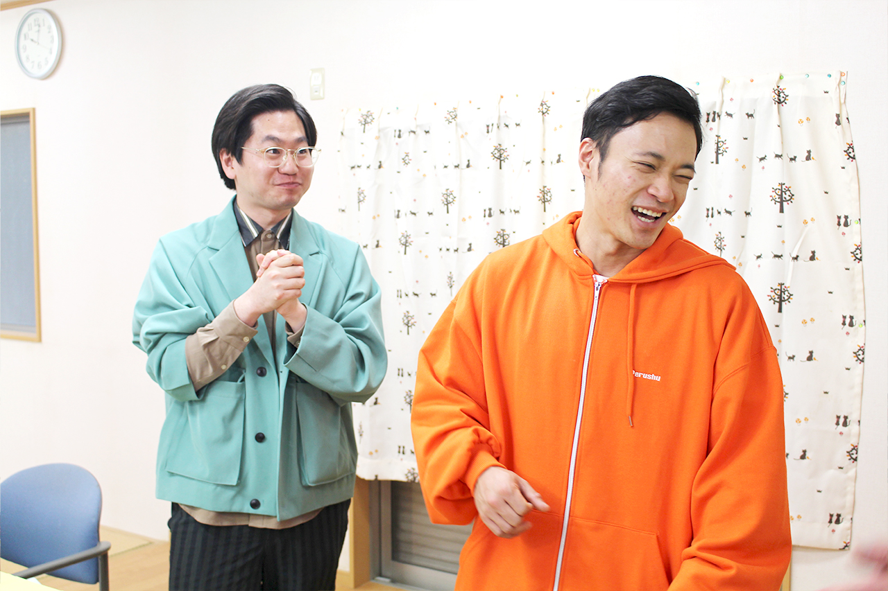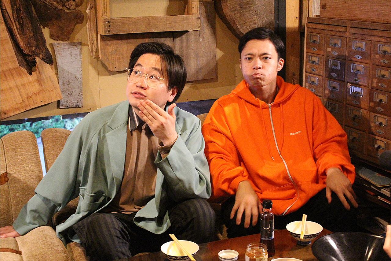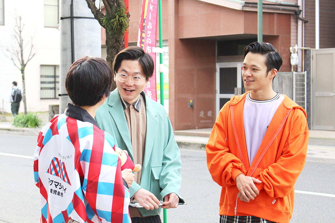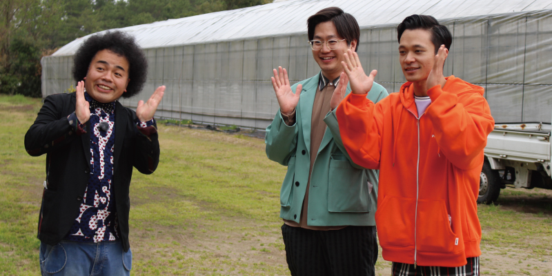 たける(左・岡山県出身)と、ショーゴ(右・東串良生まれ)からなるお笑いコンビ。M-1グランプリ2020ファイナリストの若手実力派漫才師。岡山の郷土芸能・備中神楽をモチーフにした独特のツッコミが特徴。ショーゴは芸人屈指の筋肉自慢。TBSテレビ『ラヴィット!』金曜日レギュラーとして活躍中。(グレープカンパニー所属)