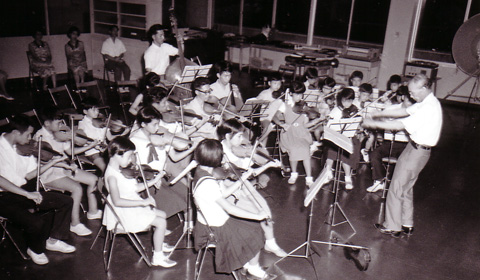 発足時は小学生10人・中学生10人、高校生7人、指導者5人と客員演奏家10人を加えて総勢42人。翌年から毎年1回定期演奏会を開催するようになりました。演奏歴としては、1968年皇太子夫妻を迎えての「明治百年記念式典」における特別演奏、1969年米国・ジョージア州ノースフルトン高校合唱団との親善演奏会、ニューヨーク州ロングアイランドユースオーケストラとの合同演奏会、1977年「西郷南洲没後百年記念式典」など。1976年にはアメリカ独立200年を祝って総勢60人が渡米し、各地を巡回公演、音楽を通しての親善に貢献したことが評価され、1978年「鹿児島県芸術文化奨励賞」を受賞しました。