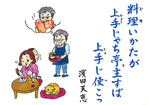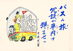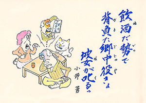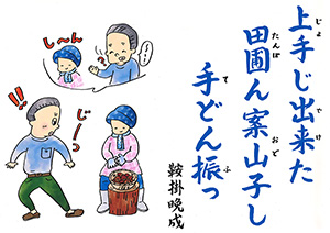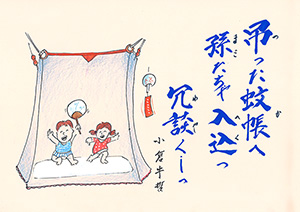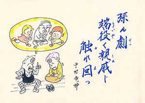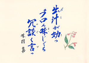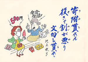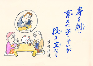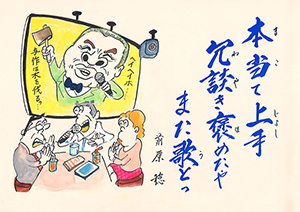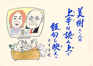 MBC「さつま狂句」の挿絵を45年以上にわたって担当。人情句、色っぽい句、自然の美しさを詠んだ句など、皆さんから寄せられた句に添えられた挿絵に、思わずうなずいたり笑ったり…。若松さんの挿絵は「さつま狂句」の庶民性をさらに引き出してくれます。