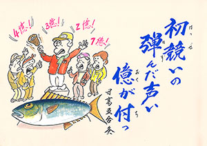 初競いの弾んだ声い億が付っ