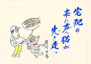 宅配の来た声へ猫が先き走っ