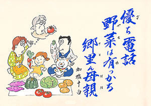 優ち電話 野菜は有っかち 郷里ん母親