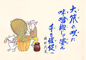 大笊れ咲た 味噌麹じゃ婆ん 手を催促っ