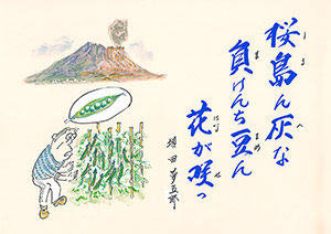 桜島ん灰な負けんち豆ん花が咲っ