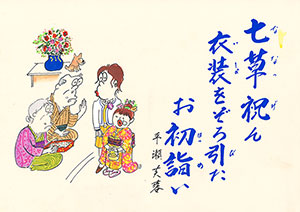 | 七草祝ん 衣装をぞろ引た お初詣い |
