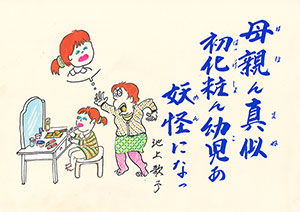 母親ん真似 初化粧ん幼児あ 妖怪になっ |