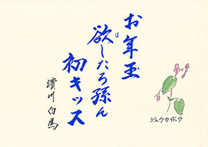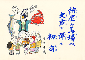 | 納屋ん馬場べ 大声で弾ん 初商 |