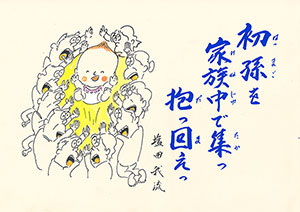 | 初孫を 家族中で集っ 抱っ回えっ |