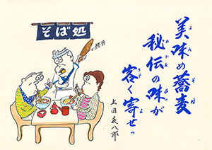 | 美味め蕎麦 秘伝の味が 客く寄せっ |