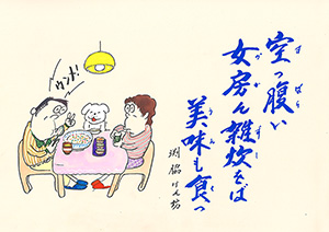 空っ腹い 女房ん雑炊をば 美味も食っ |