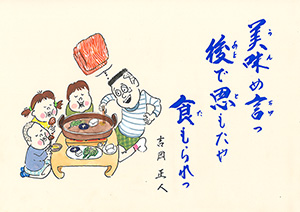 美味め料理ゆ 食ろて痩せ亭主しゃ 凄ぜ肥えっ |