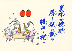 美味か焼酎 唇を舐め舐め 猪口く握っ |