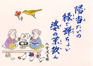 陽当たいの 縁で弾ちょい 婆の茶飲ん |