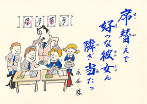 席替えで 好っな彼女ん 隣ぎ当たっ |