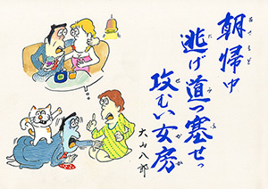 朝帰ゆ 逃げ道つ塞せっ 攻むい女房 |