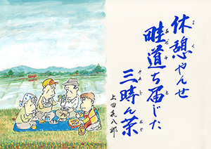 休憩やんせ 畦道ち届じた 三時ん茶 |
