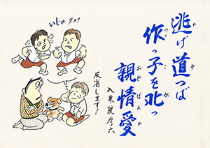 逃げ道つば 作っ子を叱っ 親情愛 |