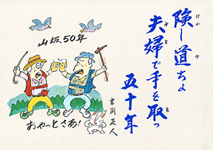 | 険し道ちょ 夫婦で手を取っ 五十年 |