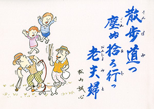 散歩道っ 塵ぬ拾ろ行っ 老夫婦 |