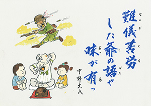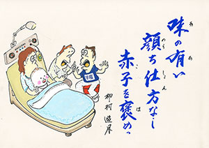 腹下でっ 味も無粥で 養生をしっ |
