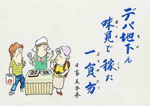 デパ地下ん 味見で稼た 一食分 |