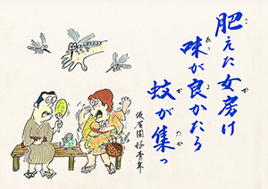 肥えた女房け 味が良かたろ 蚊が集っ |