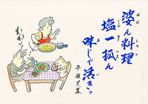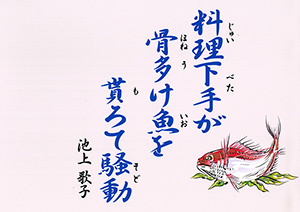 料理下手が 骨多け魚を 貰ろて騒動 |