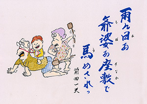 雨ん日あ 爺婆あ座敷で 馬めされっ |