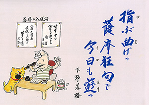 | 指ぶ曲げっ 薩摩狂句で 今日も遊っ |