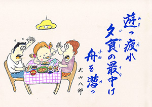 遊っ疲れ 夕食の最中け 船を漕っ |