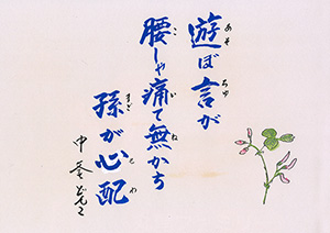遊ぼ言が 腰しゃ痛て無かち 孫が心配 |
