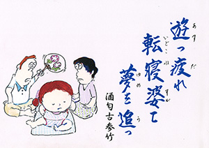 遊っ疲れ 転寝姿て 夢を追っ |