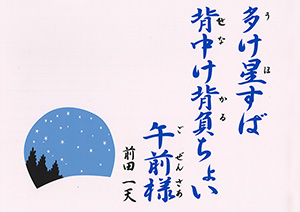 | 多け星すば 背中け背負ちょい 午前様 |