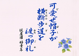 可愛ぜ帽子が 横断歩道を 渡っ御礼 |