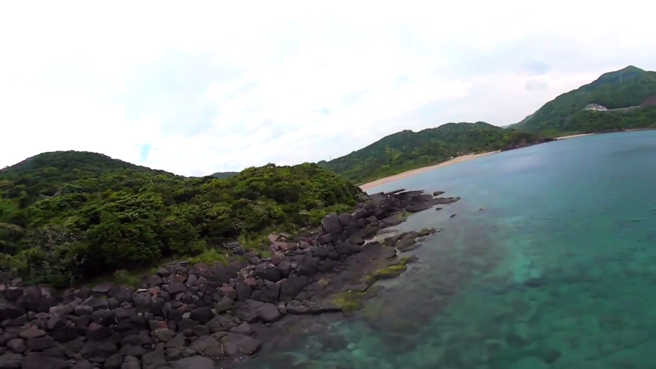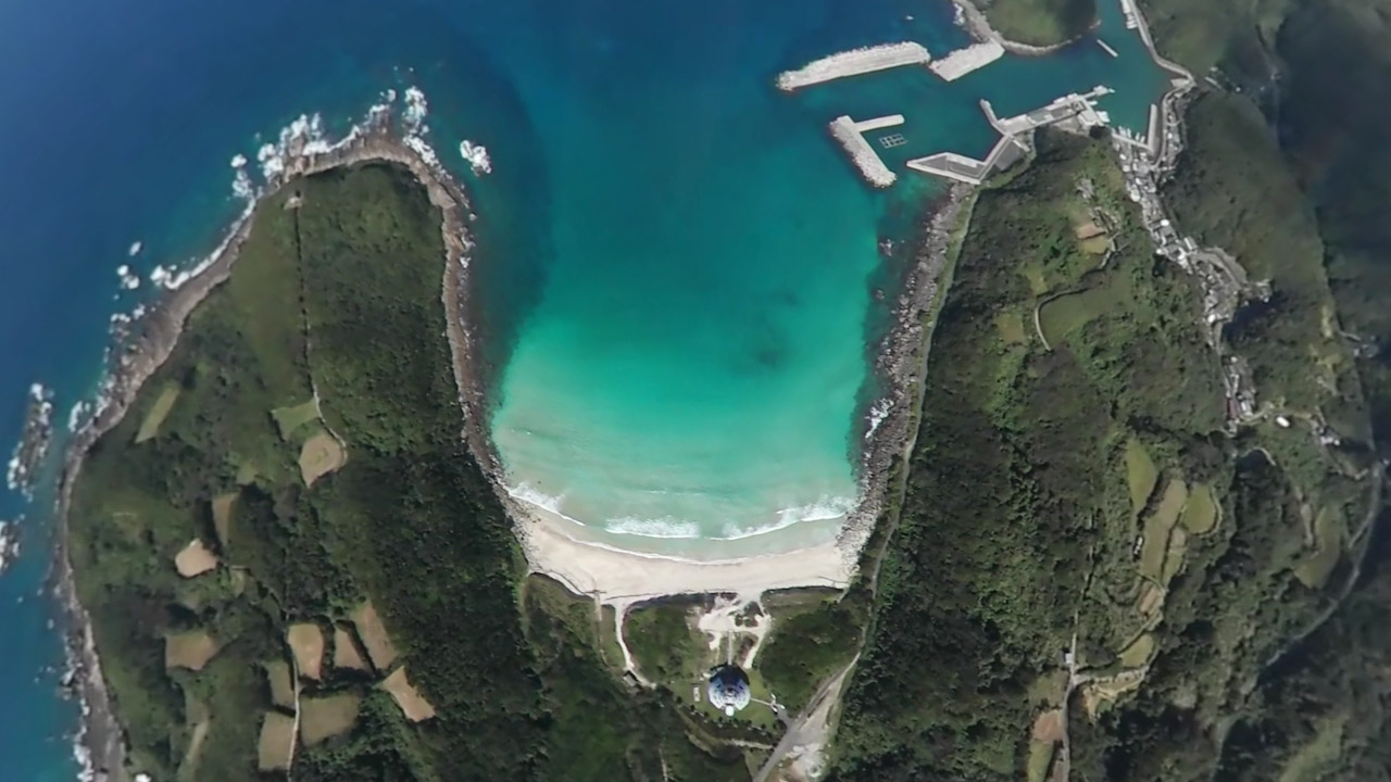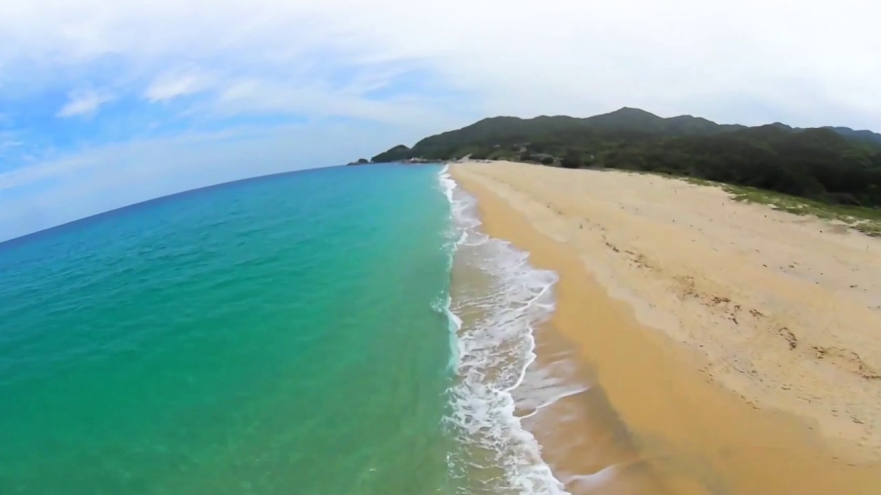 日本の水浴場88選にも選ばれた場所。上空から種子島を一望。